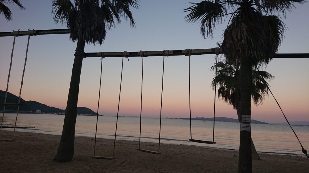 その後は、糸島のビーチへ向かい日没の美しい景色を眺めながらブランコをしたり、夕暮れ時のきれいな海を撮影をしたりビーチで満喫!天気がいいこともあり、海と夕景がきれいでなんだかハワイにいるような気分になりました!素敵な黄昏時を満喫して1日目は終了。