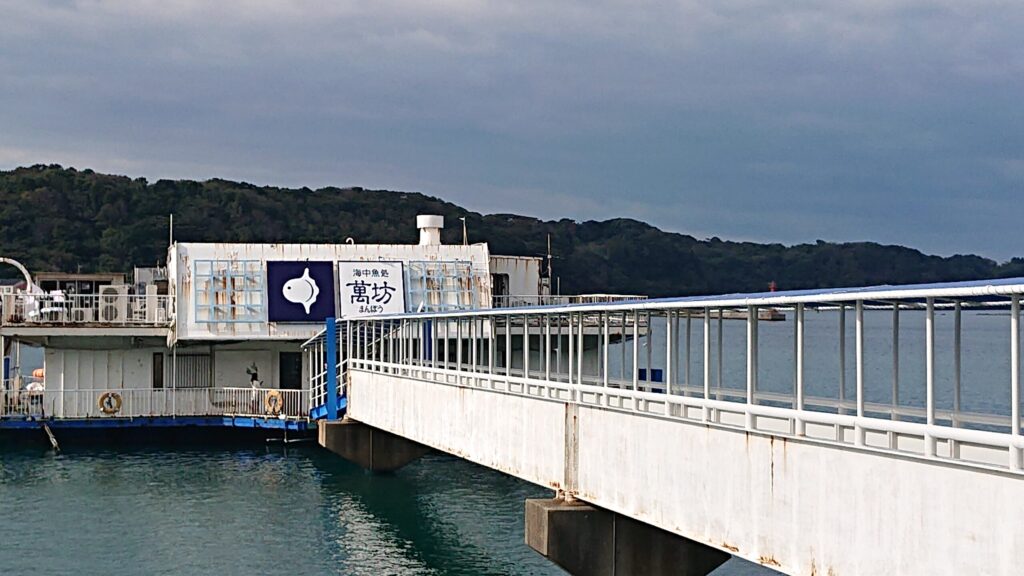 2日目は待ちに待ったイカを食べに、呼子へ!「海中魚処 萬坊呼子本店」へ向かいました。ここは海の波間に浮かぶ海中レストランで駐車場から桟橋を渡りレストランへ向かいます。席の種類としては海中にある<テーブル席>と<小上がり席>、海の上の<お座敷席(広間)>の3種類があります。海中席では海中の魚を眺めながら、広間席では広々とした座敷で玄界灘を眺めながら美味しいイカを食べられます。