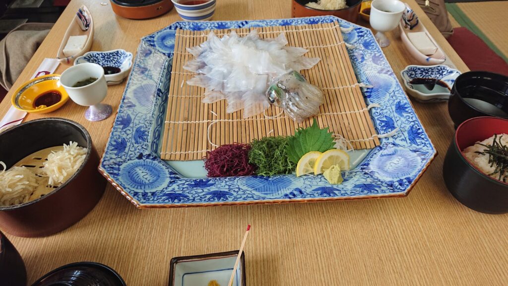 レストランに到着したのは10時過ぎにて、既に待ち人員もありましたが11:30頃には座敷席の方に案内していただけました。(海中席希望で待っている人数が多く、早くイカを食べたいため待ち人員が少ない座敷席の方で待ちました!)