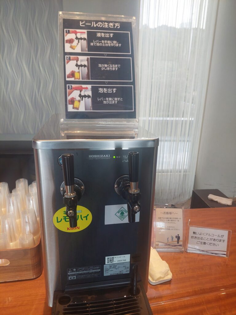 ラウンジではソフトドリンクや、コービー、生ビール レモンサワーなど利用可能です。