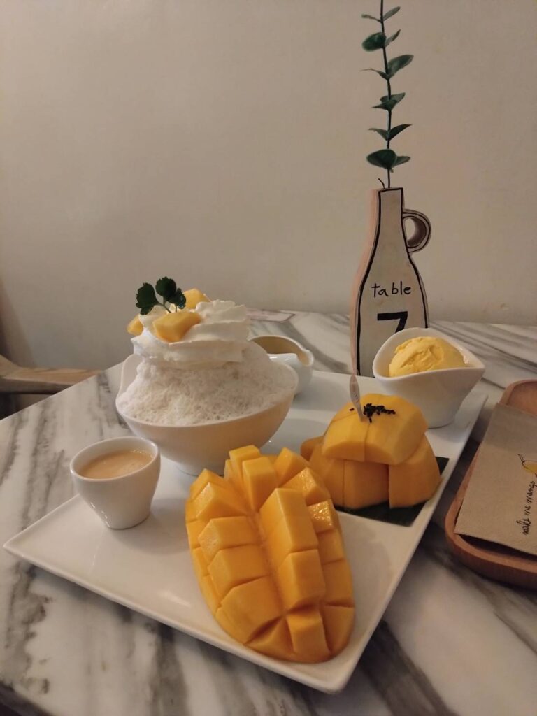 お天気も良かったので1月でも日中は気温が30度を超えます。そんな時は、マンゴーとかき氷で休憩!南国はフルーツが絶品でした!!